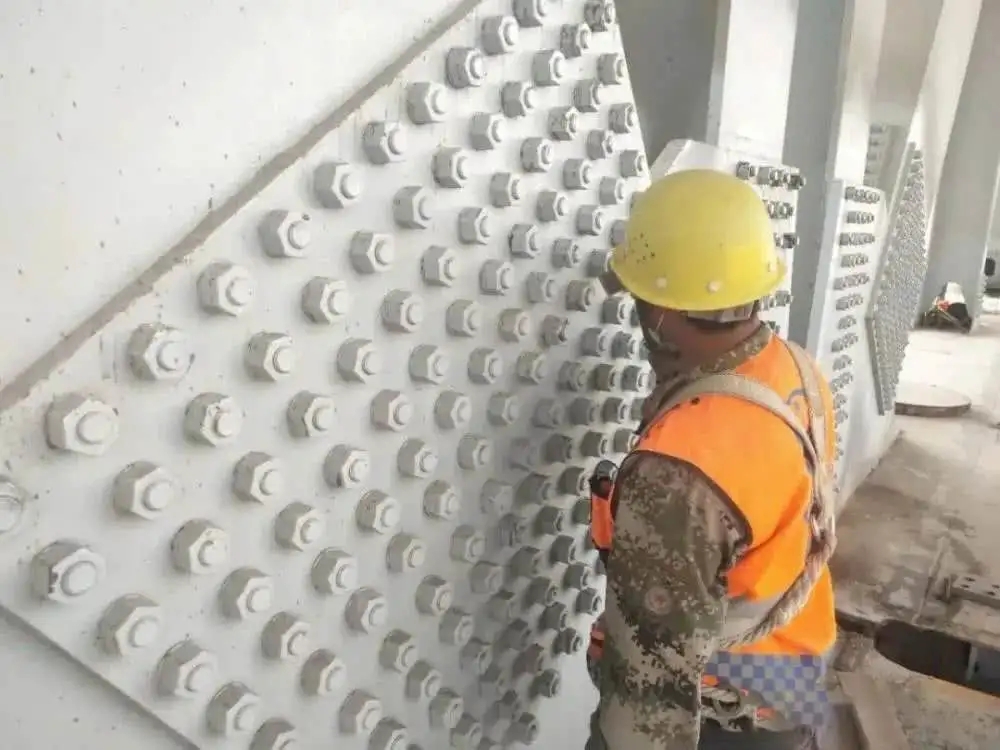 高强螺栓的安装 发表日期:2023-12-11 高强度螺栓的强度等级远高于普通螺栓,因此在安装高强度螺栓时,它不同于一般的螺栓,高强度螺栓一般用于重力荷载设备中,如桥梁等大型建筑物,因此可以说高强度螺栓在环境中的安装要求更高。扭剪型高强螺栓高强度螺栓连接副的安装1)?施工前,高强度大六角头螺栓连接副按出厂批号复验扭矩系数,其平均值和标准偏差应符合图纸要求。扭矩系数平均值应在0.11~0.15范围内,标准偏差应小于或等于0.01。复验数据作为施拧的主要参数。根据GB/T1231-91的规定,对确保扭矩系数供货的螺栓连接副批量为3000套,并按每批抽取8套检验扭矩系数。高强度螺栓的其它试验参照GB/T1231-91执行。2)?安装高强度螺栓时,清除飞边、毛刺等,摩擦面保持干燥,不得在雨中作业。?3)?一般用打入冲钉的办法穿入高强螺栓,禁止绞刀扩孔。个别栓孔必须扩孔时,在征得工程师同意后,用绞刀进行修孔,修整后孔的直径应小于1.2倍的螺栓直径。铰孔前将四周螺栓全部拧紧,使板迭密贴后再进行。以防止铁屑落入板迭缝中。严禁气割扩孔。修孔后用砂轮机清除孔边毛刺,并将砂轮屑清扫干净。?4)高强度螺栓连接安装时,在每个节点穿入的临时螺栓和冲钉数量,由安装时可能承担的荷载计算确定,并满足下列规定:?(1)不得少于安装总数的1/3;?(2)不得少于两个临时螺栓;?(3)冲钉穿入数量不宜多于临时螺栓的30%。5)?不得用高强度螺栓兼做临时螺栓,以防损伤螺纹引起扭矩系数的变化。?6)?高强度螺栓的安装应在结构构件中心位调整后进行,其穿入方向以施工方便为准,并力求一致。高强度螺栓连接副组装时,螺母带圆台面的一侧应朝向垫圈有倒角的一侧;螺栓头下垫圈有倒角的一侧朝向螺栓头。?7)?高强度螺栓的拧紧分为初拧、复拧、终拧。复拧扭矩等于初拧扭矩,螺栓复拧后进行终拧。初拧、复拧、终拧后的高强度螺栓用三种不同颜色油漆分别在螺母上涂上标记(红色—初拧,黄色—复拧,蓝色—终拧)。初拧和复拧用于固定作用,扭矩值是终拧扭矩值的一半左右,工具可以选择手动扭矩扳手或者定扭矩电动扳手;终拧时的扭矩值必须达到规定的扭矩值,必须选择定扭矩电动扳手。8 )高强度螺栓在拧紧时,只准在螺母上施加扭矩。?9)?高强度螺栓施拧采用的扭矩扳手在每班作业前后均进行校正,合格后才能使用。扭矩误差为扭矩的±5%;检查扭矩扳手必须标定,扭矩误差为使用扭矩的±3%。?10)?高强度螺栓在初拧、复拧、终拧时,连接处的螺栓按一定顺序施拧;从螺栓群中间顺序向外侧进行拧紧,并在当天全部终拧完毕(24小时之内)。施拧时,不得采用冲击拧紧和间断拧紧。11)?高强度螺栓拧紧的检查设专职人员负责,并在终拧1小时以后、24小时之内完成扭矩检查。采用松扣、回扣法检查时,先在螺栓、螺母上做标记,然后将螺母退回30°,再用检查扭矩扳手把螺母重新拧至原来位臵测定扭矩,该值不小于规定值的10%为合格。经过检查的螺栓,其不合格者不得超过抽验总数的20%,如超过此值,继续抽检,直至累计总数的80%合格率为止。然后对欠拧者补拧,超拧者更换后重新补拧。山东汉普作为电动工具生产厂家,其主营:电动扭剪扳手、电动扭矩扳手、手动扭剪扳手、手动扭矩扳手、便携式螺栓扭矩检测仪,轴力扭矩仪及轴力计等,山东汉普产品规格多样,欢迎您的咨询,咨询电话:18653495537,微信同号!