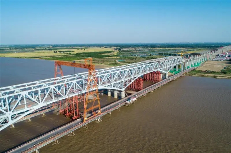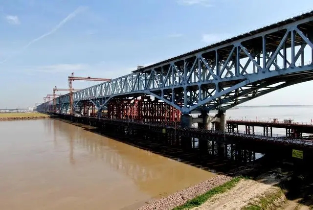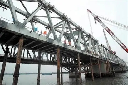 图3?京沪高铁济南黄河特大桥采用悬臂法架设钢桁梁(拱)