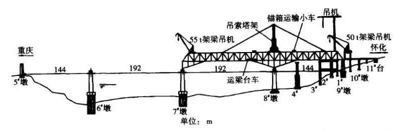 图4?长寿长江大桥采用设吊索塔架的悬臂拼装法