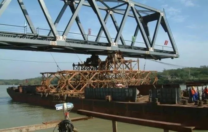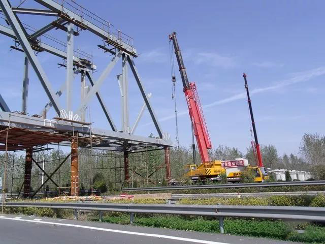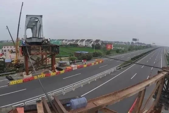 此法仅适用于桥下净空不高的跨公路钢梁、水流浅缓的跨河钢梁;前提是不影响桥下通航或通车。