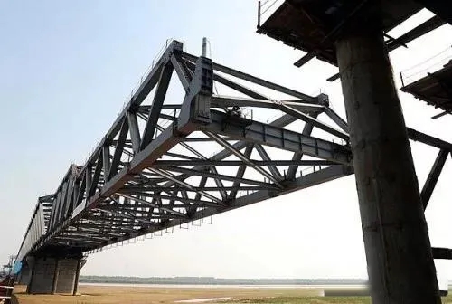 图9?郑州黄河公铁两用大桥采用顶推法架设钢梁时的前导梁
