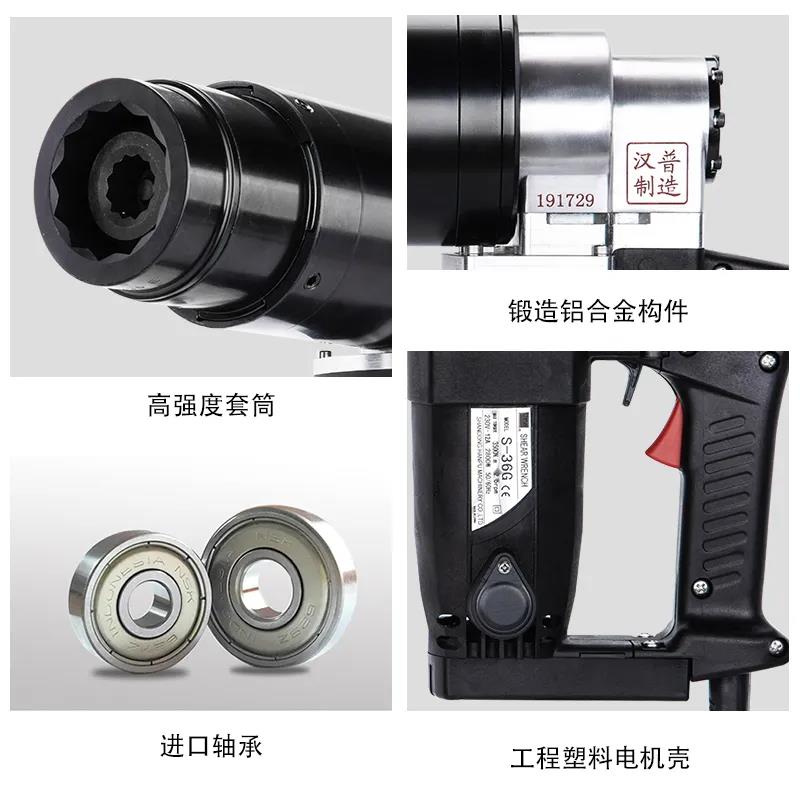 山东汉普丨扭剪型扳手 发表日期:2023-11-03 扭剪扳手主要是终紧扭剪型高强螺栓的,它的目的就是把扭剪型高强螺栓的梅花头打断即可。工作时将扳手头对准螺栓头,扣动开关即可开始工作,几秒后,螺栓梅花头将被扭断,然后抽出扳手扣动扳机将梅花头弹出,即结束工作。 汉普电动扭剪扳手S-36G特点:1、功率大,动力强劲,显著提高工作效率;2、采用高强度钢,产品坚固耐用,不易损坏;3、采用人体工程学设计,操作方便。 汉普电动扭剪扳手S-36G参数: 汉普电动扭剪扳手S-36G细节: 产品展示: 汉普公司1、生产车间山东汉普机械工业有限公司,是集研发、生产、销售于一体的电动工具厂家,主营产品:电动扭剪扳手、电动扭矩扳手、便携式螺栓扭矩检测仪、轴力扭矩仪、轴力计等,经过二十多年的创新与发展,成为国内规模较大的电动扳手生产基地。2、现代化生产车间公司现拥有62亩工业园区及3万平米生产研发车间,是专注于生产电动工具的生产基地。3、生产加工设备汉普公司引进了大量瑞士、德国、日本制造的加工设备,拥有完善的生产加工工艺。4、研发团队汉普公司拥有自己的研发团队,不断创新研发,使产品更具市场竞争力。 山东汉普欢迎您的咨询,咨询电话:18653495537,微信同号!