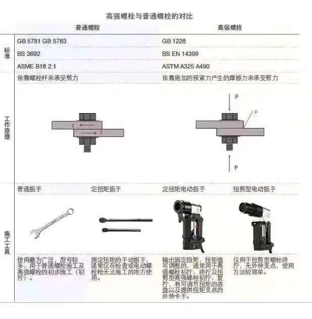 普通螺栓和高强螺栓的标示是对同等级螺栓现场识别的基本方法。由于英美标准中对于高强螺栓扭矩值计算的取值并不相同,所以识别两种标准的螺栓也有必要。
