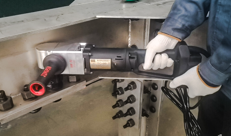 角向型电动扭矩扳手:狭窄空间作业的理想选择 发表日期:2025-03-05 在钢结构连接中,狭窄空间作业已成为常态。角向型电动扭矩扳手凭借其独特的设计优势,成为解决这一难题的理想工具。角向型电动扭矩扳手的核心优势在于其紧凑的机身设计。与传统直柄扳手、枪式扳手相比,其动力头与手柄呈90度角布置,大幅减少了操作半径。这种设计使扳手能够在有限的空间内灵活转动,轻松应对设备密集区域的螺栓紧固作业。在桥梁钢结构安装中,角向型电动扭矩扳手展现出卓越的性能。例如在钢桁梁斜边紧固时,其紧凑的机身可以轻松套入螺栓中,调节扭矩值轻松完成紧固工作。随着工业设备日益精密化,作业空间日趋紧凑,角向型电动扭矩扳手的应用价值将更加凸显。其独特的设计不仅提高了作业效率,更确保了狭窄空间作业的精确性和可靠性,是现代工业维护不可或缺的专业工具。