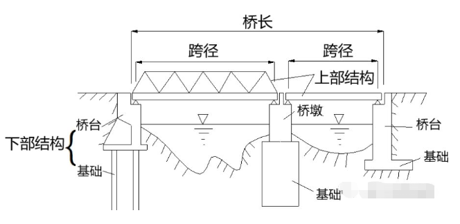 桥昰一种架空的人造通道。由上部结构、下部结构和基础三部分组成。上部结构包括桥身和桥面;下部结构包括桥墩、桥台;基础有明挖基础、桩基础、沉井基础、沉箱基础、管柱基础和承台等构成。主要作用即为了解决跨水或产生与发展者越谷的交通,以便于运输工具或行人在桥上畅通无阻。