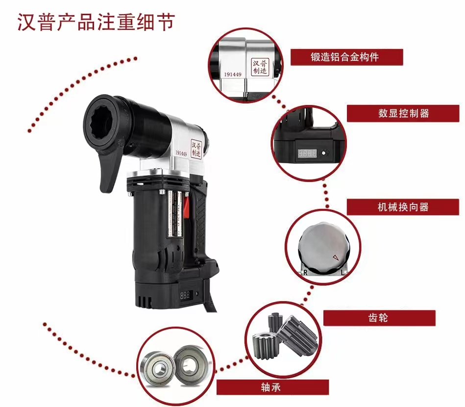 汉普电动扭矩扳手在桥梁建设领域的应用 发表日期:2023-11-13 桥梁是一个国家文化的象征,也是一国综合实力的展示。近年来,中国桥梁行业已完成了从追赶到世界的精彩变身。中国桥梁不仅代表着交通运输基础设施建设的高水平,也成为展示中国改革开放巨大成就和综合国力的重要符号。近年来,随着我国经济的发展,对于电动工具的要求也越来越高,传统的紧固工具已经不能满足施工需要,目前越来越多的电动工具兴起,选择一把合适的性价比高的电动扳手对于整个项目的施工进程具有重要意义。汉普电动扭矩板手汉普电动扭矩板手隶属于山东汉普机械工业有限公司,总部位于泉城之都–山东济南,是一家集生产、销售、研发为一体的高科技民营企业。公司生产“汉普”牌扭剪型电动扳手、扭矩型电动扳手、扭剪型初、终紧电动扳手、手动紧固扳手等产品,广泛应用于电力建设、冶金建设、桥梁建设、高层建设、化工建设等钢结构行业。 汉普电动扭矩扳手产品特点1. 工作时,需提前设定扭矩值,当达到设定好的扭矩值时,扳手会自动停止;2. 带有数显控制器,扭矩精度高,重复精度达±3%;3. 带有机械转向控制器,可实现正转和反转;4.整机体积小、重量轻,便于携带。山东汉普电动扭矩扳手型号规格多样,欢迎您的咨询,咨询电话:18653495537,微信同号!