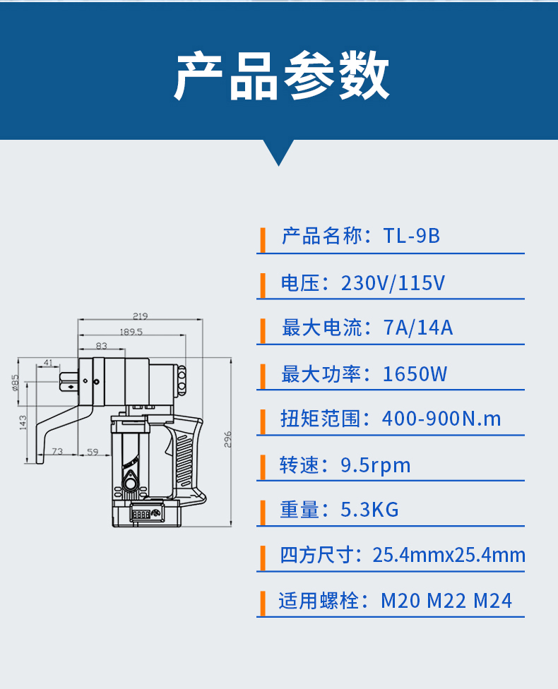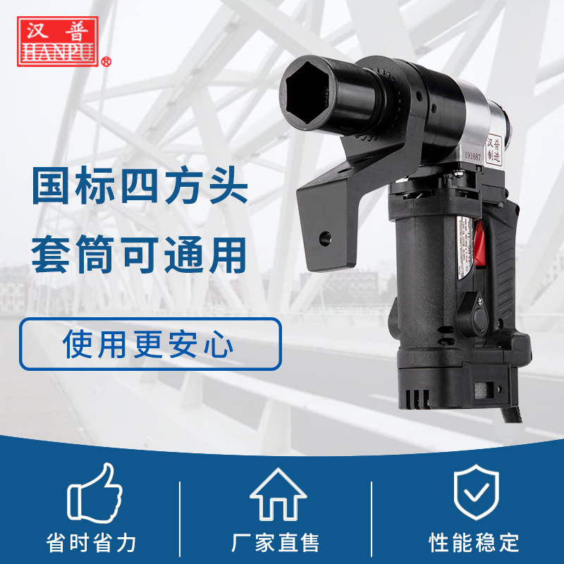 M20/M22M24大六角高强螺栓用电动扭矩扳手 发表日期:2023-11-17 汉普电动扭矩扳手专用于紧固有扭力要求的六角螺栓,动力为220v或110v交流电源,工作时需提前设定好扭矩值,当扳手达到设定好的扭矩时候,扳手自动停止。其扭矩范围为:400-900N.m,适合螺栓为:M20 M22 M24汉普电动扭矩扳手TL-9B特点:1、带有数显控制器,扭矩控制精度可达±3%2、采用大功率电机,转速高、体积小、可靠性强3、配合汉普有L型反力臂套筒,扭矩输出更加准确4、整机具有体积更小、重量更轻、更易于操作的特点山东汉普机械工业有限公司,是集研发、生产、销售于一体的电动工具厂家,主营产品:电动扭剪扳手、电动扭矩扳手、便携式螺栓扭矩检测仪、轴力扭矩仪、轴力计等,经过二十多年的创新与发展,公司现拥有62亩工业园区及3万平米生产研发车间,引进了大量瑞士、德国、日本制造的加工设备,成为国内规模较大的电动扳手生产基地。山东汉普欢迎您的咨询,咨询电话:18653495537,微信同号!