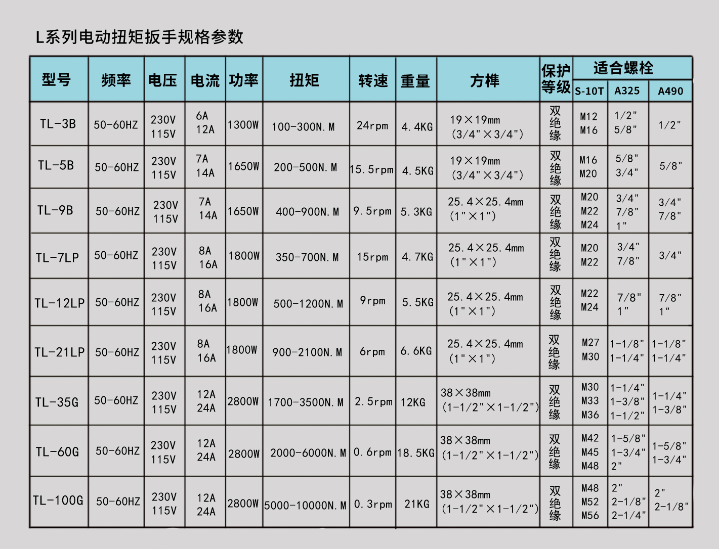 山东汉普丨扭矩扳手规格 发表日期:2023-12-12 随着现代工业的发展,扳手都是一种不可或缺的五金工具,如今,五金批发市场上的扳手多种多样,品牌、类型、规格型号等都是消费者选购扳手应该要考虑的因素,尤其是扳手的类型和规划型号,这是因为不同类型、不同规格型号的扳手,适用的场合也不同。扭力扳手特点:扭力扳手再拧转螺栓或者螺母时,能显示出所施加的扭矩值,扭矩也可以调节,当施加的扭矩值达到规定值后,扳手会自动停止。关于电动扭力扳手的厂家,今天给大家推荐山东汉普机械工业有限公司。山东汉普生产的电动扭矩扳手专门用来紧固大六角高强螺栓,其最显著的特点就是:体积小、重量轻、狭小空间可用、易于操作、使用方便。汉普扭力扳手规格:山东汉普扭力扳手有:Y系列电动扭力扳手和L系列电动扭力扳手Y系列电动扭力扳手主要规格有:TN-3B、TN-5B、TN-9B、TN-7LP、TN-12LP、TN-21LP、TN-12G、TN-25G、 TN-35GL系列电动扭矩扳手主要规格有:TL-3B、TL-5B、TL-9B、TL-7LP、TL-12LP、TL-21LP、TL-35G、 TL-60G、TL-100G汉普电动扭矩扳手参数:在线咨询享受更多优惠~山东汉普欢迎您的咨询~咨询电话:18653495537,微信同号!