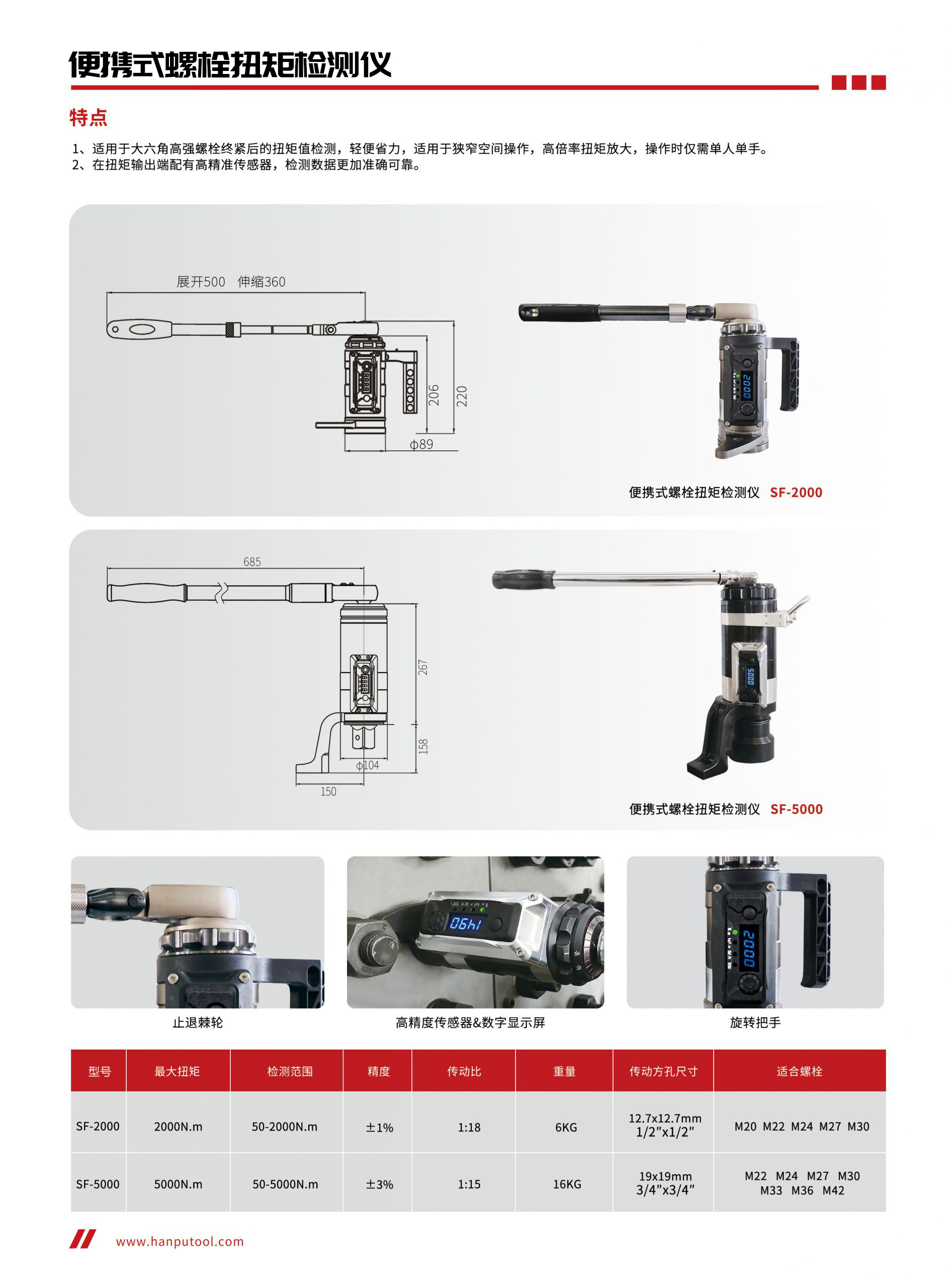 钢结构高栓终拧扭矩检查用什么方法 发表日期:2024-07-25 目前,国内钢结构终拧扭矩检查的方法主要是紧扣法和松扣复位法两种。两种方法各有利弊,紧扣法效率高,散差小,但手动操作难度高。松扣法效率低,但易操作。检测终拧后高栓扭矩值的工具有很多,山东汉普的便携式螺栓扭矩检测仪以小巧轻便、精度高广受工友的肯定与赞赏。以下是检测仪的参数。一般检查扭矩值有两种方法,一种是紧扣法,一种是松扣法。1、 紧扣法紧扣法最让现场技术人员的头疼的是紧扣试验及紧扣比的确定。相关规范之所以规定紧扣法要做试验,主要原因是扭矩系数和加载速度相关。通常高强度螺栓进场扭矩系数检验一般使用手动扳手加载,施工时使用电动扳手加载,检查时又使用手动扳手,三者加载速度相差比较大,测量的扭矩系数相差也比较大,极个别情况下能达15%!换一种说法,也就是说达到同样的预紧力,不同的加载速度需要的扭矩可能相差15%!紧扣法试验或者紧扣比试验其实就是严格的全要素模拟现场工况,消除这类误差。2、 松扣法松扣法比较有争议的一个是松开的角度,个人认为规定一个范围比固定一个角度更好,个人建议15~45°。有些规范规定为60°,虽然好操作(正好螺母松开一个棱角),但容易造成螺栓彻底松开反而麻烦。松扣法对扭矩系数也有一个假定,就是和施拧时一致,但是松扣复位法的扭矩系数实际上是二次拧紧的扭矩系数,大量试验数据证明,当前国内钢结构高栓的表面处理工艺,第一次拧紧和第二次拧紧的扭矩系数还是区别蛮大的,个别情况下超过10%,所以一些有经验的技术人员,在抽样测量螺栓连接副的第一次扭矩系数后,会有意顺带使用终拧扭矩检查扳手加载来测量第二次拧紧的扭矩系数,用来减小松扣复位法误差,当然这种做法一般应用于对精度敏感的课题实验或者出现较大争议时。不论紧扣法还是松扣法,还有一个问题就是检查时,必须卡住螺栓头,防止跟转。一旦跟转,测量的检查扭矩就应视为作废,也需要对螺栓进行更换(文章来源于公众号:钢结构构螺栓施拧)地址:https://mp.weixin.qq.com/s/eqkJJnskS8D86qXu5r_Z2A如果您需要扭矩值检测工具可以联系山东汉普:18653495537