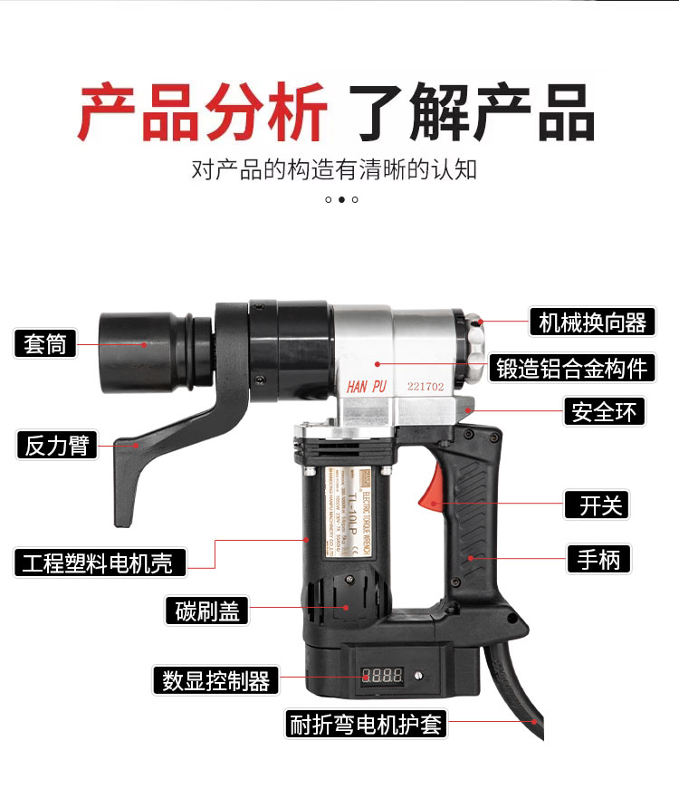 产品动力更强,重读精度高,可减少作业强度,提高工作效率。集成式数显控制器,控制精度高,重复精度可达±3%。摒弃电机反正转,采用更加先进机械式反正转,减少电机损耗,提高可靠性。相较于Y系列,L系列可安装各种通用套筒或接头,通用型强,适合小批量多品种螺栓的工作情况。