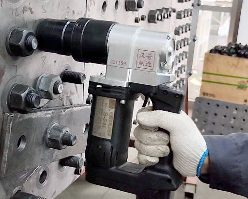 该产品专门用于紧固高强度扭剪螺栓,并且在紧固完成后将剪断的梅花头保留在套筒内部不掉落,随后扣动扳机将梅花头弹出,动力为220V或110V交流电源,相比较与传统六角螺栓,扭剪螺栓配合电动扭剪扳手,施工方便快捷,扭矩控制准确并且方便检查。