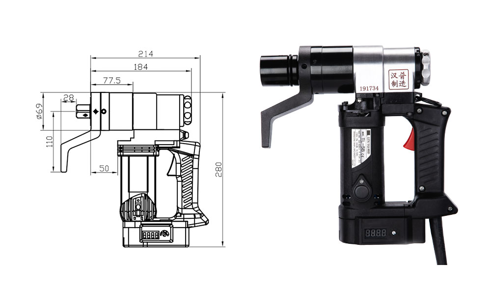 L系列电动扭矩扳手工作时提前设定好要求的扭矩,机器达到扭矩后自动停止转动,带有正反两个档位,不但可以紧螺丝也可以卸螺丝,工作时,机器不带有冲击,需要反力臂提供发作用力,L系列输出部为标准四方头,可配套各种通用套筒或接头。
