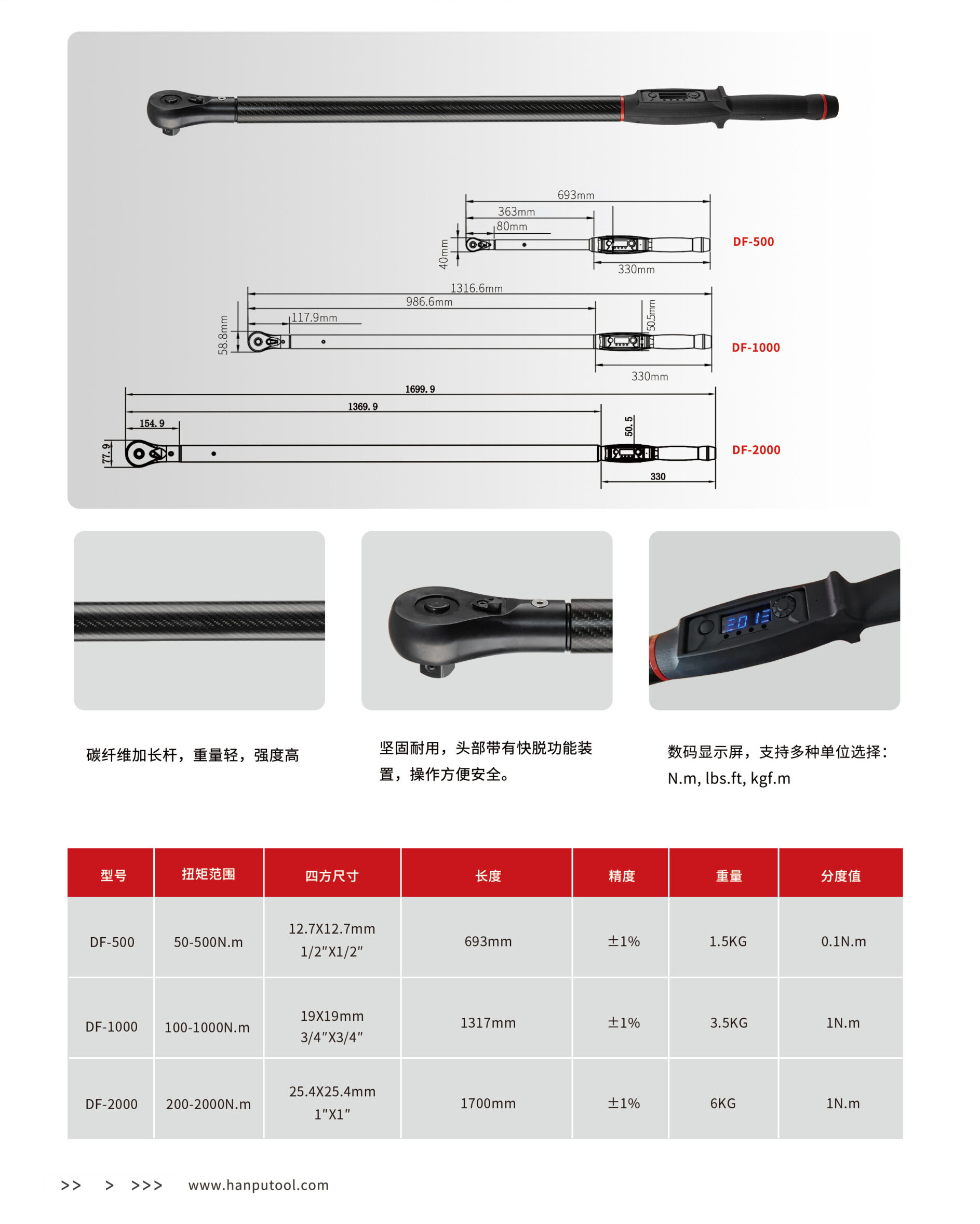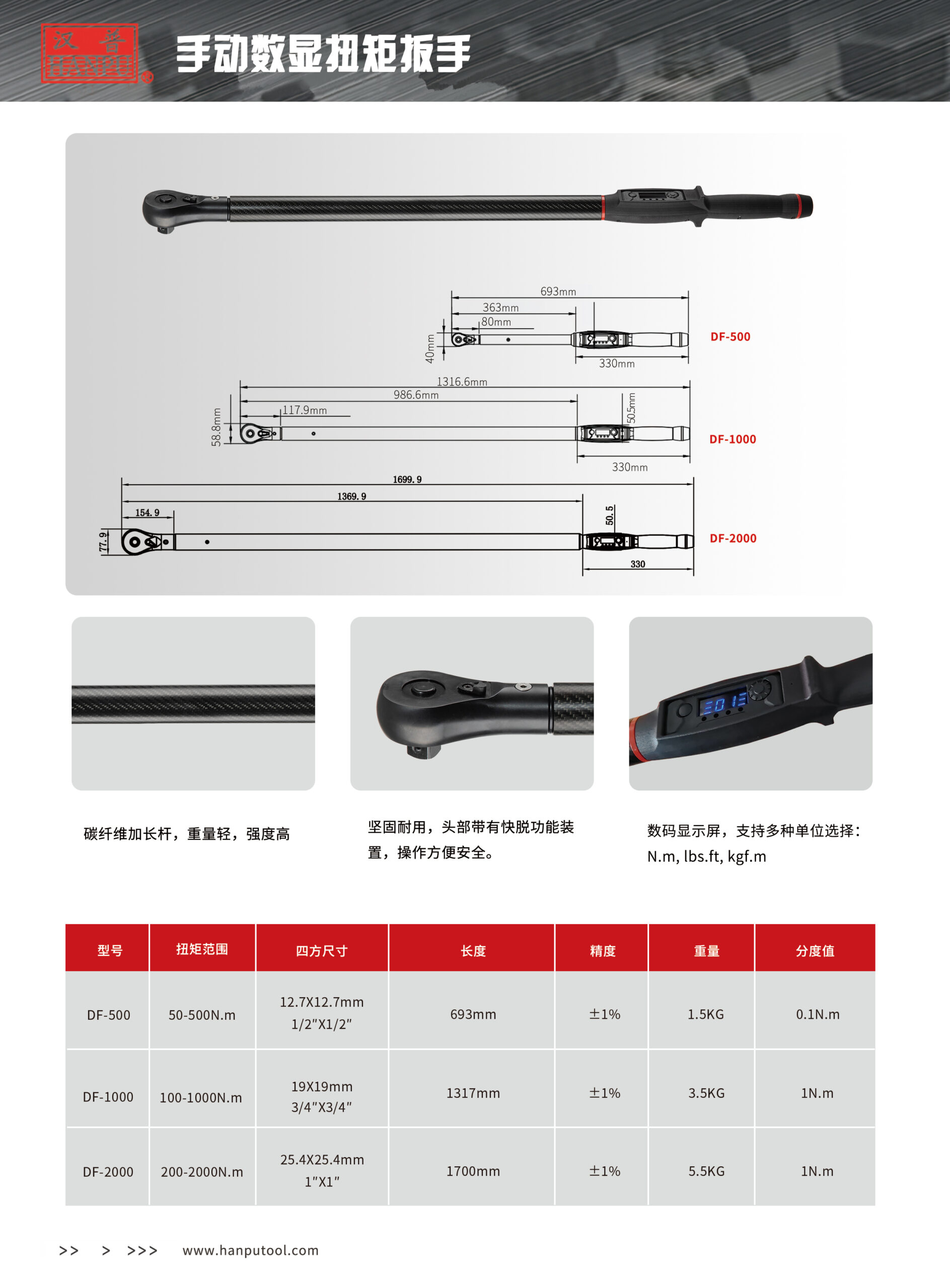 扭矩扳手的一种,有两种模式,紧固模式和峰值模式,既可以作为手动扭矩扳手紧固螺栓又可以作为测力扳手,检测螺栓扭矩值。扭矩可以实时显示。