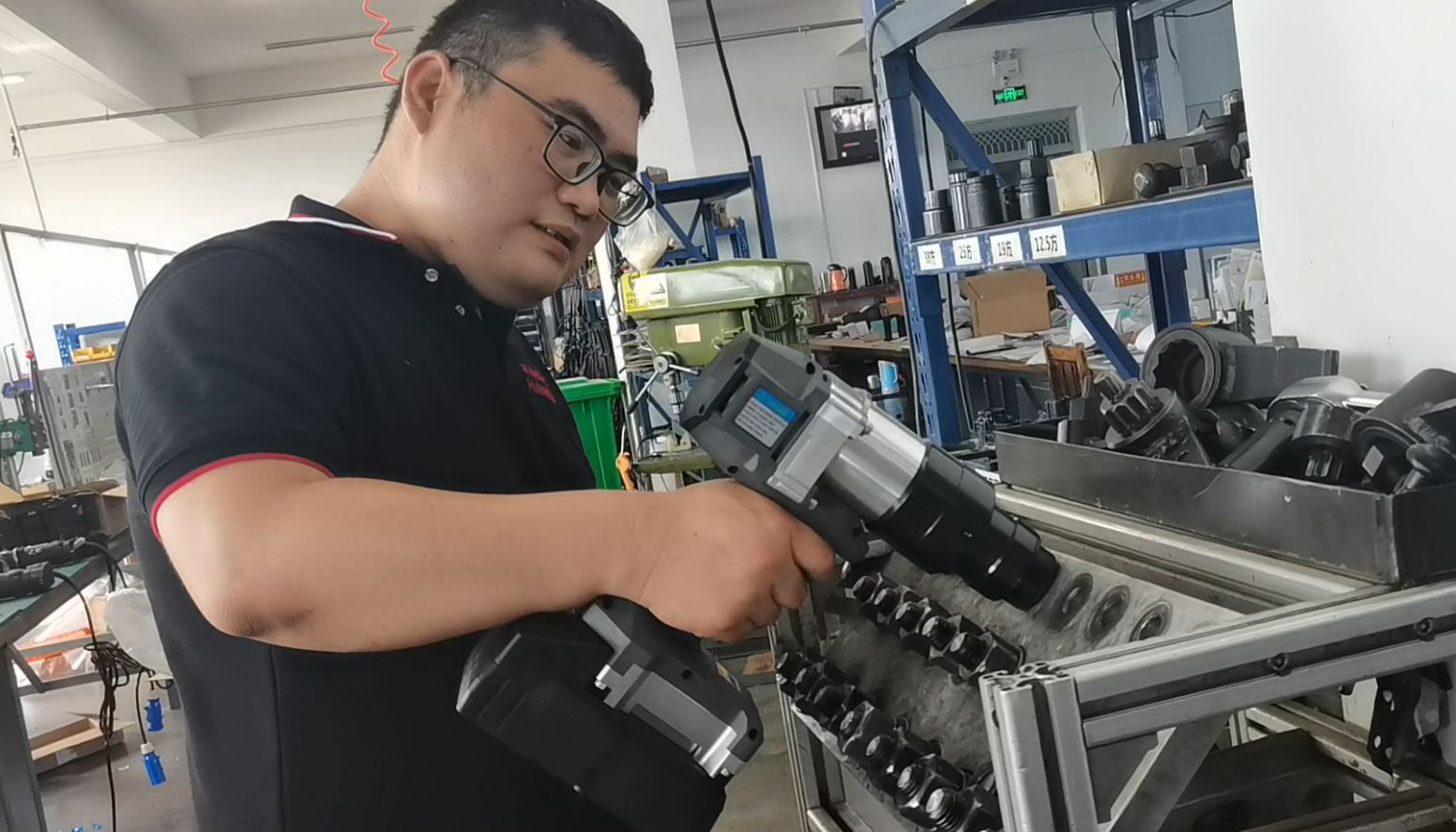 该产品专门用于紧固高强度扭剪螺栓,并且在紧固完成后将剪断的梅花头保留在套筒内部不掉落,随后扣动扳机将梅花头弹出,动力为48V锂电电池,续航能力(以10.9级高强螺栓为例):满电状态下M24 约400颗;M22 约500颗;M20 约700颗 ;M16 约1200颗,相比较与传统六角螺栓,扭剪螺栓配合电动扭剪扳手,施工方便快捷,扭矩控制准确并且方便检查。